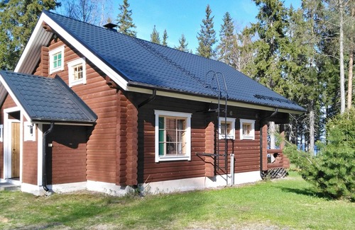 70 km north of Joensuu, L.Pielinen (871,2 km2) 60 m, common shore with shallow sand bottom and some rocks (also lot of boats on the beach), own boat. Log cottage 2001, kitchen-living room, bedroom with double bed, bedroom with convertible sofa, bedroom with three beds, washing room, sauna (elec. stove), terrace, balcony. Well-equipped log cottage of high standards situated in the Purnuniemi cottage area by the Lake Pielinen in Koli. Good possibilities for fishing, the cottage has its own boat. For children, there is bed and highchair. Satellite television, WLAN and bluetooth radio. ATTN. TV is located on the loft.