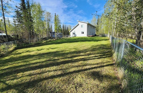 Located in Soldotna, enjoy what this 3-bedroom duplex has to offer. With 1 king bed, 1 queen bed, and 1 bunk bed,(twin and full) guests can relax comfortably. The 1.5 bathrooms includes towels, basic necessities and equipped with a hairdryer for added convenience. In addition, there is a cozy living room with a sofa bed for extra sleeping space. The kitchen is equipped with everything you need to enjoy home cooked meals. A beautiful and enchanting retreat, this property is a great place to call home base while you're visiting and exploring what Soldotna has to offer. Private area with lots of open space, a large fenced backyard and plenty of parking.