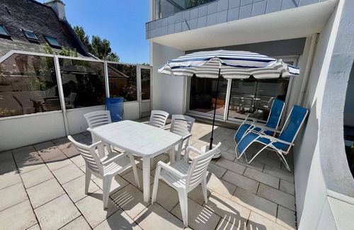 In a quiet residence 600m of the beach, nice apartment 3 rooms of 65 square meters for 4peoples located at the ground floor, door n°9, bulding B in residence "Naîades" in Quiberon.