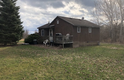 Modern cabin with all the amenitities. Can sleep 6.3 bedrooms ,bath ,kitchen ,living room. Deck ,barbecue grill ,picnic table. Located near many wineries ,golf courses beaches ,hiking trails and excellent fishing (with my charter boat and others in area also) for salmon and trout, Walleyes ,bass and pike. Famous Chimney Bulffs 3 miles away .cabin is located 700 ft off from main road surrounded by woods and field with property going down to Sodus Bring your own towels and linens. Sheets etc (Twin beds)and one full size. 2 nite minimum stay. Long term rental available