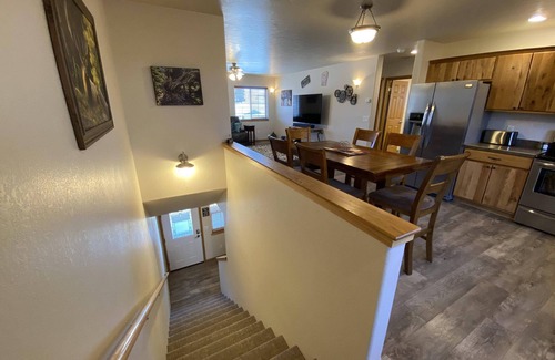 Clean, quiet, comfortable home. This is part of a newer duplex on a quiet dead end street. Newly set up property for 2022. Centrally located in Cody Wyoming. Tv’s in bedrooms and 65” TV in living room. WiFi, Hulu no ads, Hulu Live TV, Disney+ no ads, ESPN+, Roku, Bluetooth sound connect, AC, coffee, full sized laundry, full kitchen, front patio with BBQ, desk space and much more. Garage is not included, but has 2 off street parking spaces right in front. Sorry, no pets / smoking.