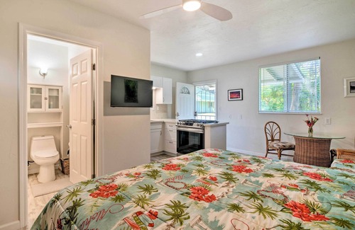 Get lost amongst lush bamboo groves and pick-your-own fruit trees at this dreamy 1-bath studio cottage in Honoka'a. Spend your days camped out in the grass perfecting an enviable mid-winter tan, or find inspiration for work or play by exploring 5 beautiful acres, including an orchard and fishing pond. If you ever tire of this quaint little paradise, venture out and experience the striking beauty of the trails in the Hamakua Forest Reserve, or the turquoise waters of Waipi'o Black Sand Beach.