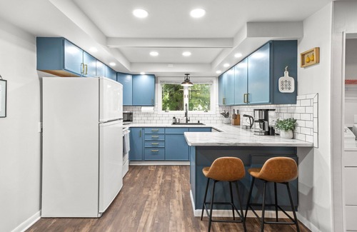Feel welcome in a spacious home away from home. While tastefully curated, comfort is a priority with memory foam mattresses, a full kitchen, blackout curtains, and fluffy towels. Two living rooms perfect for multiple activities at once. Perhaps both a game and movie night?