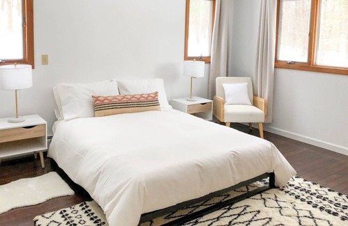 Enjoy our fully equipped kitchen, comfortable living room, washer and dryer, 2 full bathrooms and 3 restful and well-appointed bedrooms. We have high speed internet for working/Zooming during your stay. The dining room and outdoor deck dining can comfortably accommodate 6 people. Rocking chairs face the forest for a relaxing spot to drink your coffee or wine and enjoy listening to the birds. There is a large barn/workshop on the property as well, but rest assured that no one will be staying there while you are visiting.