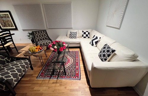 This unique house has a style of its own. One story mid century ranch house tastefully renovated recently into a modern home. It’s open, warm and bright. Hard wood floors in the entire house and tiled bathroom. Gas fireplace in the living room and a functioning wood stove in the kitchen and dining area are great additions for a romantic getaway. The large double sink bathroom has a beautiful walk in shower. All appliances are brand new. Kitchen with a gas stove is fully stocked and inviting.