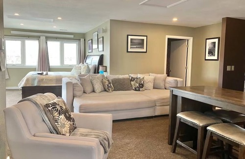This property is so special and unique as it is was once built as a rec house and lodge for the ski area once proposed on the mountain side. Although that never came to fruition, this neat building was built and spent a few decades changing identities, always giving hospitality to visitors. We have now been able to create four different and spacious guest spaces in a quiet and dark residential area, each with a very unique feeling to them.
