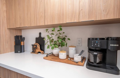 Rayo Del Sol (or in English, Sunray) is centrally located near downtown Lake Havasu City. This 4 bedroom, 4 bath luxury vacation home is designed with you in mind. The open concept kitchen area has all the necessities for food prep, cooking, baking and even a morning coffee station. The dining table has a comfortable seating capacity of 10 with 4 stools at the island to complete the 14 guest capacity. Each bedroom was thoughtfully put together and designed for comfort and convenience. The home can support 12 -14 guest at a time with 6 beds, a folding twin bed and a spacious couch for 2 if needed. The home also features a private backyard, private pool, sun loungers, outdoor furniture and BBQ grill. A private Casita serves as the 4th bedroom and has a full bath, kitchenette area with refrigerator, coffee station, and sink.