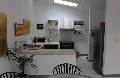 Stay in a truly unique and creative space in Tepoztlán and experience modern living in this recently built two-bedroom home! Owned by local artists, this property offers the perfect blend of moder luxury and artistic flare. Boasting plenty of natural light and a spacious open-plan living and dining area, this property is perfect for families, friends, or solo travelers. The fully equipped kitchen and cozy bedrooms with comfortable beds provide all comforts of home. Located in peaceful neighbourhood, this home is the ultimate retreat for those seeking relaxation and tranquility. The owners live next door and are eager to make your stay a memorable one, offering helpful tips and recommendations to ensure you get the most out of your visit. Book now and experience the best Tepoztlán has to offer!”