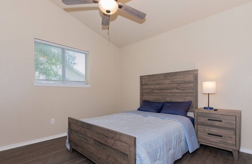 3 bed/2 bath remodeled home is ready for a family or group staycay. This one story home has an open floor plan, 1350 sq. ft of living space, washer/dryer, fully furnished kitchen, custom updates to the bathroom, cozy living room w/fire place. Smart TV's in all bedrooms. Home is located in the heart of Killeen; close to Walmart, Billy Bobs, 7 minutes from Fort Hood main, 35 min-Georgetown, 60 min-Austin
