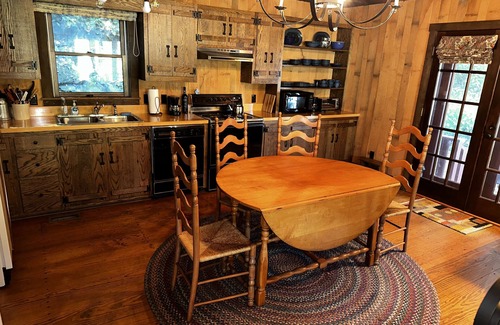 You are about 10 minutes from shops, restaurants, and Food Lion in Sparta and about 7 minutes to Independence, VA where there is a wonderful Food City grocery store as well as various restaurants. The New River Campground is only about 1/2 mile away. You can rent tubes and kayaks there. They will drop you upriver and you end up back at the campground after your float. It's very convenient. In the fall, enjoy a fire in the stacked stone fireplace in the living room.