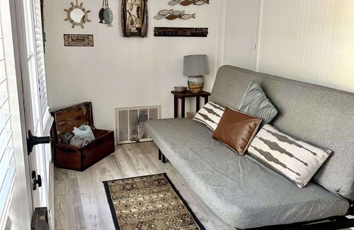 Reel Haus is Our newest addition! She is actually a 2 bedroom and 1 1/2 Bath that sleeps 6. The Reel is very close to the pool located in between Lago and Posada and the Angler Haus. When you walk in you enter from the back patio into the Dining area. Tucked into the back of the house we have a sofa sleeper perfect for two guests. To the left you enter the Master bedroom where we have a the coziest room in the house. The master has a queen size bed and full size on suite bathroom. The living room and kitchen are open concept and perfect for quality time with friends and family. Connected to the kitchen is our half bath equipped with a washer and dryer. Finally at the front of the house we have a studio area with another queen size bed, couch and seating area, and a divider for the space between the room and living area. The house has a large back porch perfect for outdoor relaxation! Part of 7 cottages you can rent together or separate.