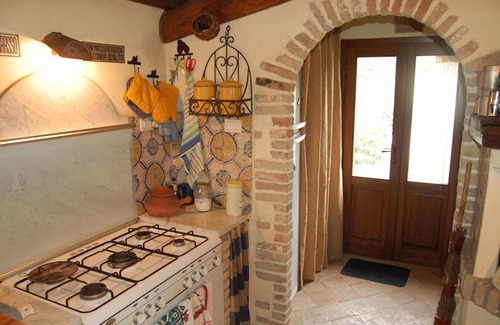 Across the room, or even from the back entrance of the house, you enter the rustic kitchen and fully equipped, which has a small window overlooking the amazing green hills of the Tuscan countryside, from which, while cooking, you can enjoy an a fantastic view that stretches to the sea.