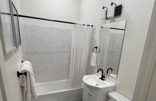 1 Bed, 1 Bath, with a queen bed. The apartment comes with WIFI, a built-in desk for work, and smart tv for play. Brand new kitchen appliances and every utensil needed to cook. No need to find a laundry mat, there is a washer and dryer located in the unit.