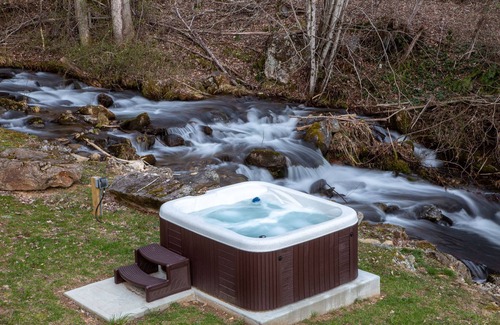 Relaxing Hot Tub by Creek, Fire Pit Near Smokey Mountain National Park | Cabin in Sylva