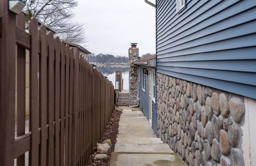 Beautiful view of water. Lake sparkles from moonlight and stars at night. Relax and watch a movie in the jacuzzi tub. Shoot pool, play arcade games or just watch a movie on the Big screen. Cuddle up next to the cozy fireplace and relax, read a good book or just listen to music. Or gather the family on a rainy for board games. The property has two floors with thier own outside entrances. The property is located inside seasonal campground with houses and campers. Please do not use campground facilities. Property has well and septic tank. sometimes the water has a slight iron smell, bottle water is recommended. Property has professional pest control but is located in a rural area so it is possible to see an occasional field mouse.
