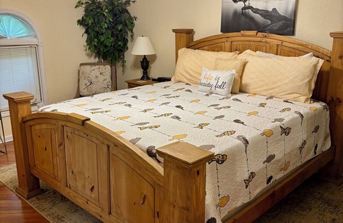 Relax and unwind in our beautiful guest house on the main channel of Lake Hamilton. Enjoy lake views from the balcony and lake access is just a block away. Take a small walk or a short drive to the gated community park where you can enjoy swimming, fishing, grilling, sunsets or launch a boat!
