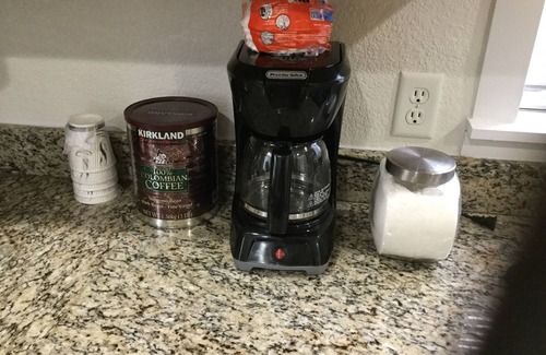 New modern appliances such as, refrigerator, stove, oven, microwave, dishwasher and coffee maker.