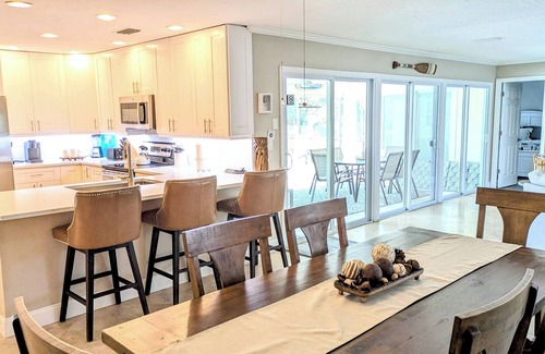 This beautiful vacation home has undergone a complete renovation! The kitchen is now a stunning space with white cabinets, quartz countertops, and a sleek backsplash. The bathrooms have also been remodeled to a high standard. All the furniture, bedding, kitchenware, and appliances are brand new, too!
