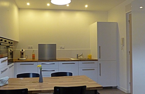 4/5 persons are welcomed in this 2 rooms appartment of 45 sq meters. There is a large living room with a luxury sofa bed of 140 cm, a 82 cm HD TV, a fully equiped kitchen : fridge, freezer, dishwasher, microwave, induction hob, oven.