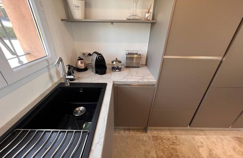 A bucolic setting for this completely renovated house, a paradise for summer holidays, the residence located along the Domaine de la Croix vineyards offers a unique landscape in La Croix-Valmer. The house is sublime, with a spacious living room and its fitted kitchen, the materials are of high quality, the terrace and the perfectly landscaped garden make it a living room in its own right for summer days. Upstairs, lovely view of the sea and the vineyards, two beautiful bedrooms with queen size bed and comfortable mattress, a shower room and a WC. Fiber internet connection, air conditioning in all rooms. High standing services. Possibility to rent household linen. Departure cleaning in addition.