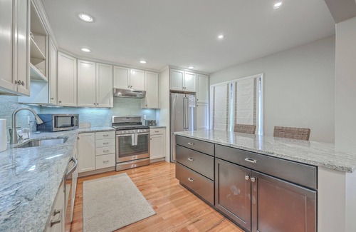 This property has been beautifully updated and renovated. A well-stocked kitchen featuring subway tile, quartz countertops, and stainless steel appliances is great for gathering. An island with seating for two makes an ideal spot to catch up on emails or enjoy a cup of coffee. The dining area is open to the main living area with seating for six at its oversized table. Loads of comfy seating, an overhead fan, and 58" Smart TV make everyone feel right at home. The newly renovated sun room boasts a 64 inch TV for your enjoyment. Off the sunroom is the grilling deck with gas grill.