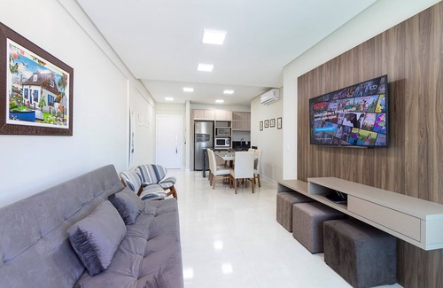 Apartamento Residencial Di Trento 403. Comfortable and cozy, this finely furnished property has an air-conditioned living room with Smart TV, dining table and full kitchen, a social bathroom, two air-conditioned bedrooms, one suite with TV, balcony with barbecue and views of the sea.