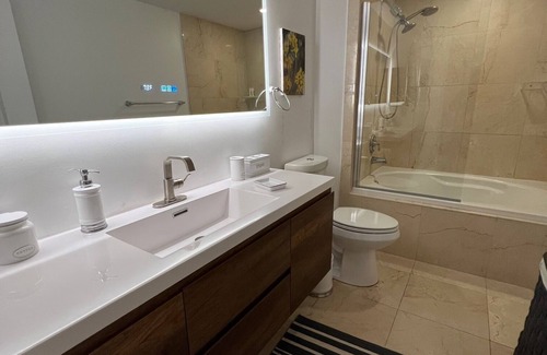 Beautiful resort style , just walk to the beach 0.7 mile from the beach, sauna steam gym, lap pool, beach pool, valet parking, business center ,mini golf, ping pong, mini soccer table. walkiing distance for entreteniment concert banana boat, tow georges, fish depot, (snorkel, jet sky rentals) ,fishing and dive charters.10 min Dalrey, 15 min Boca Raton, 20 min Palm beach and 30 min Fr Laurderdale international airport.
