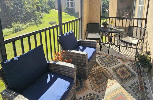 Escape to our 2-bedroom, 2-bathroom resort-style condo in Tuscana resort, minutes from Disney and Central Florida's top family attractions! Complete w/ high-speed Wi-Fi, smart TV's, private balcony, washer/dryer and access to all on-site resort amenities such as pool, hot tub, gym, bar, and restaurant. Take advantage of the nearby golf courses, shopping, and theme parks. Perfect for families or small groups, this beautifully furnished condo offers comfort, convenience, and the ultimate vacation!