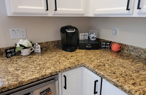 KITCHEN: Fully equipped w/ stainless steel appliances, microwave, bar seating, coffee bar w/ Keurig coffee maker and regular coffee maker, spices, toaster oven, cooking basics, dishware & flatware