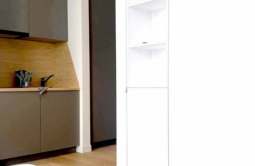 Apartment is equipped with all you may need for comfortable stay, i.e. king-size bed, a small kitchenette with an induction hob and fridge, kettle, washing machine, hi-speed Wi-Fi & Smart TV with Netflix, a shower with heated floor, dryer. Adjustable central heating. Led lighting. (Total 32 amenities available)