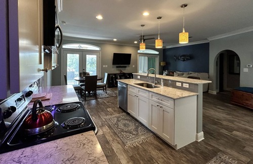 Located on a bayou with river and gulf access, so bring your boat and your fishing poles. Great area for kayaking, canoeing or just swimming off the dock. Covered parking for 4 vehicles. Easy check-in.