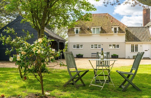 This stylish retreat is on the edge of the delightful coastal town of Aldeburgh, set well back from the road with access to a large garden to the front of the property and outdoor seating area for al fresco dining.