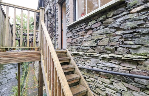 Amenities: Central heating. Electric oven, gas hob, microwave, fridge/freezer, washing machine, dishwasher. Smart TV, TV, WiFi. Fuel and power inc. in rent. Bed linen and towels inc. in rent. Highchair and travel cot available. Designated parking for 1 car. Elevated decked area with furniture. One well-behaved dog welcome. Sorry, no smoking. Shop and pub 0.1 miles, Grasmere Lake 0.6 miles. Note: The apartment is accessed via external steps, unsuitable for those with limited mobility. Note: Check-in from 4pm, check-out by 10am. Note: Please supervise dogs and children near the river. Note: Limited headroom in the twin bedroom