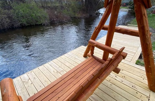 Riverfront Escape in Downtown Relax on the Covered Patio with the Family | House in Grayling