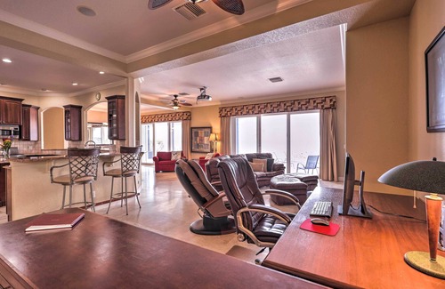 Live large and in charge when you stay at this upscale Titusville vacation rental! Perfect for family reunions and group getaways, the 7-bedroom, 6-bath duplex unit sits right on the Indian River and features its own heated pool, hot tub, and fishing dock. When you're not basking in the Florida sunshine, take a dip in the en-suite bathroom's jetted tub, relax with a movie on one of the home's 10 flat-screen cable TVs, or watch dolphins swim from the upper balcony with a cocktail in hand!
