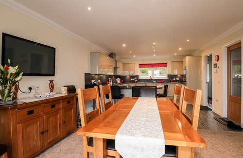 Amenities: Oil underfloor central heating with woodburning stove. Electric oven and hob, microwave, fridge, fridge/freezer, washing machine, tumble dryer, dishwasher, 5 x TVs with Freeview, DVD, CD/radio, WiFi, selection of books, games and DVDs. Fuel, power and starter pack for stove inc. in rent. Bed linen and towels inc. in rent. Ample off road parking. Large front patio with furniture. Sorry, no pets and no smoking. Shop and pub 7 miles. Coast 10 mins walk. Note: Property only accepts up to a maximum of 5 people.
