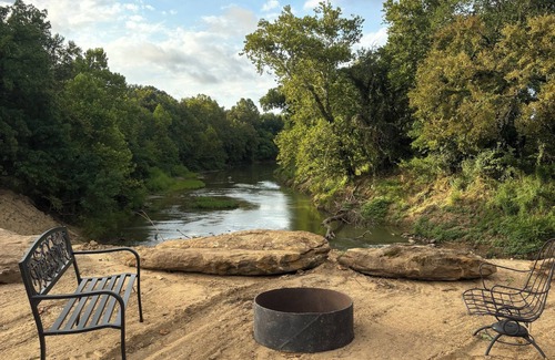 Tucked away on the peaceful banks of the Blue River, this cozy country cabin is the perfect romantic escape for two. Unwind on the private deck above the water, wade the river, or relax by the fire pit. With quiet surroundings, charming rural touches, and a horse barn on-site, this is where simplicity meets serenity.