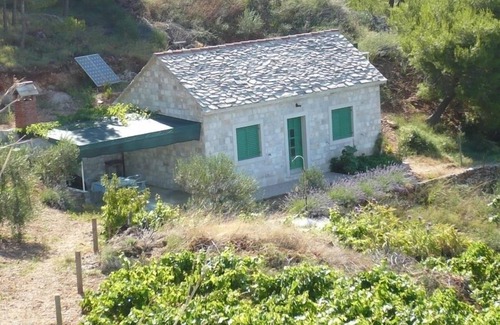 The Robinson house, secluded on a small idyllic bay, is surrounded by vineyards and olive groves and is located near Murvica, not far from the famous resort of Bol on the Central Dalmatian island of Brac. The small house is ideal for a small family or for 3 - 5 people. The 16000 m² plot is fenced and is largely occupied by vineyards.