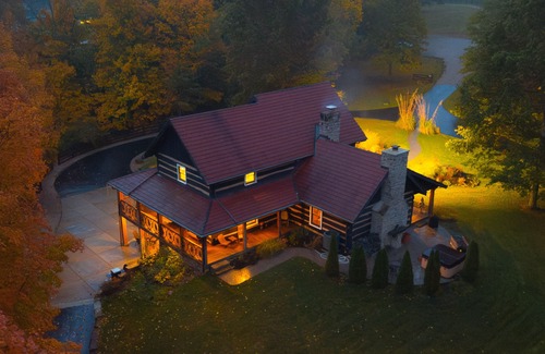 Enjoy your private room with your own private bath in this beautiful bed and breakfast with a secluded peaceful setting on over 8 acres featuring a fully stocked pond and with a wrap around covered porch. Your room includes, sitting area, TV/DVD, water, coffee, tea and snacks. Shared spaces include a cozy living room with fireplace and Smart TV/ DVD. An open loft game room, upper outdoor patio with hot tub, finished garage with walk-out patio to gas grill and fire pit & picnic area by the pond.