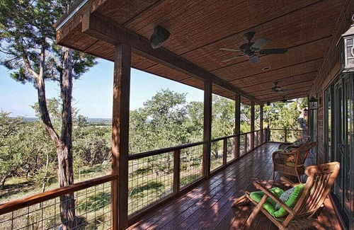 With out of this world hill country views, you will love lounging on the large covered outdoor decks so you can kick back and enjoy the scenery. De-stress in the private hot tub while soaking up your views of the beautiful Texas sky.