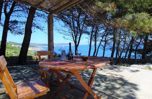A magnificent area of 2.5 acres of pine trees with direct access to the sea, this romantic trullo, ideal for two or three people, offers spectacular views of the rocky cliffs of Castro and the Palombara cove. Immerse yourself in a corner of paradise where you can smell the fragrance of the Mediterranean and listen to seagulls and cicadas interrupted only by the sound of the waves. This house is located in an exclusive and unique estate consisting of several villas and trulli, separated by pine trees. It is known as "La Palombara" and was popular with VIPs in the seventies and eighties. At the end of 2019 we rediscovered this heavenly place and we chose to upgrade and redesign parts. It is now available for guests that are looking for a hideaway from the hustle and bustle of everyday life. In the photo gallery you will find a map of the entire grounds. A path leads from the property directly to the sea. On your way down, the views are beathtaking. Once on the rocky beach, you will find four access points for swimming, diving, snorkeling or fishing in the crystal clear water of the Lower Adriatic Sea. It might be possible to see passing dolphins. (Caution: the path and access to the sea from the rocks is not suitable for small children or people with disabilities.)The trullo, made of beautiful stone walls, has one double room with en-suite bathroom with shower (completely renovated in May 2022) and a living space with kitchen (including a dishwasher), fireplace and an additional single bed. The interior is simple but functional; there is no TV nor air conditioning, but the thick walls and pine trees mitigate the heat of the summer sun. Just outside the building, a private partly shaded terrace offers wonderful views.A barbecue and an outdoor shower complete the picture.The well-known fortified village of Castro, with its bars, cafes, restaurants and a supermarket, can be reached on foot in just ten minutes. The walk is along a charming path under the ancient Messapian walls. For those who prefer sandy beaches to rocks, the enchanting sandy beach of Porto Miggiano is 5 km away; very charming are also the coves of Porto Badisco and the long sandy beaches of Alimini, north of Otranto. Sheets, duvets and towels are not included. If you don't want to bring them with you from home, regardless of the length of your stay, you can rent them for €24 per person. Final cleaning is not included and costs €80, unless you clean yourselves before departure. Dogs and pets are allowed (max 2 dogs or pets, surcharge €100 per dog/pet). You will need to inform us in advance. We will ask you to pay a security deposit of €400 before arrival. The security deposit will be refunded within 7 days after departure, if there is no damage. Electricity costs (and thus where applicable AC, hot water, heating etc.) are NOT included in the price and will be charged based on your actual consumption. The price per kWh charged to guests was €0,52 on 14/03/2025, when this text was last updated, but as prices are fluctuating a lot, your actual price per kWh will be communicated a few days before your arrival based on the current market price.We decided not to include electricity costs in the rent in order to: a) keep our rental prices stable despite inflation and b) incentivate our guests to use electricity responsibly, helping us to reach our sustainability goals. Thank you for your understanding. ABOUT USWe're a team of holiday enthusiasts with diverse backgrounds based between Italy and Switzerland. 🇨🇭Our mission is to find the most unique holiday homes, refurbish them and make them available to people like you, who want to live the authentic Italian experience at a high (Swiss!) quality, without spending a fortune By booking this accommodation, you accept that:- We are obliged by law to verify the identity of all our guests. We will therefore ask you to upload copies of your IDs on our (secure) website to verify your identity before handing out the key code for the accommodation. Your personal data is treated in full compliance with EU data protection laws.- Also, we are obliged to sign a rental agreement with our guests (one person per group). This will be done digitally and requires just a few seconds on your side. You can find a template of the rental agreement on our website.- Parties, gatherings, events or loud music are not allowed at this property unless explicitly authorised beforehand by us in writing.- In case the local municipality charges a tourist tax, we will ask you to pay this separately to us and we will transfer it to the local authorities as required by law.