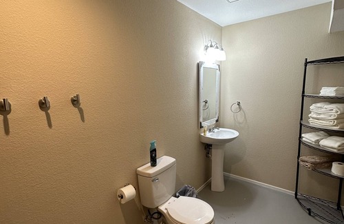 Book the number of rooms needed to accommodate the size of your party. Kitchen, washer & dryer are shared.
