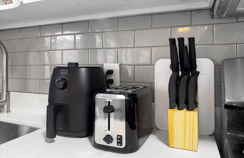 Discover refined living in this 1,000+ sq ft West University sanctuary, walking distance to the University of Texas. Close to ample food trucks, restaurants, and more. Thoughtfully designed living space showcases elegant furnishings and a 65` 4K Smart TV. Chef-inspired kitchen flows seamlessly into an entertainment-ready dining area, with a dedicated working space for professionals. Two meticulously appointed bedrooms provide serene private spaces.