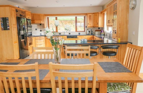 Rhossanean is a spacious bungalow situated in County Kerry, in the village of Farranfore. Inside, find five bedrooms, comprising two king-size rooms with en-suites, two doubles and a twin, there is also a family bathroom and a cloakroom, the property is able to sleep 10 people. The interior also includes an open-plan kitchen, dining and sitting area with a woodburning stove, as well as a utility. To the outside, find ample off-road parking and an enclosed garden. Rhossanean is a stylish and spacious holiday home, ideal for families and friends looking to explore County Kerry.