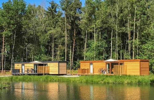 Rowan Boutique Lodge is a pet friendly lodge overlooking the lake. There is underfloor heating throughout and air conditioning. It has an open plan kitchen/lounge with breakfast bar. The lounge has a 42-inch flatscreen TV with Freeview, and a flame effect log fire, along with a double sofa bed for additional guests. This room also boasts a large bi-fold door onto the oversize deck which is pet secure. On the deck there is a barbecue, table and chairs with large sun umbrella and sun chairs. The bedroom has a king-size bed, flatscreen TV, wardrobe and bed side tables and a door onto the deck. There is a well-equipped en suite bathroom with shower, vanity unit, W.C and heated towel rail. Courtesy shower gel and liquid soap by temple spa and includes all towels, sheets, and overheads. There is no extra charge for four-legged friends- you bring all your pet accompaniments.. Tucked away in a serene corner of Yorkshire, these newly opened, architect-designed timber lodges offer a bespoke escape for discerning adults seeking tranquillity, luxury, and nature. Set within mature woodland and overlooking a peaceful private lake, each lodge is finished to an impeccable standard. Spacious, south-facing sun decks catch the light from dawn until dusk perfect for slow mornings with coffee or golden-hour drinks. A select few lodges welcome one small, well-behaved dog, so you don’t have to leave your four-legged companion behind.