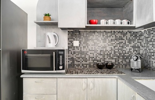 Inside, the apartment features a spacious living area with a 50-inch smart TV, a well-equipped kitchen with a dishwasher, espresso machine, oven, microwave, and toaster, as well as a washing machine and dryer for added convenience. Whether you're preparing meals or catching up on your favorite shows, you'll have everything you need for a hassle-free stay.