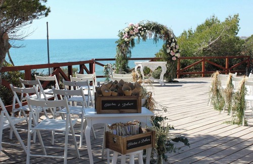 This beautiful house, close to the beautiful natural park of Sierra de Irta and located on a 17,000 m2 plot of land, is ideal for both holidays and celebrations where you can enjoy its beautiful glass porch and for large groups outside, where you will find a large wooden porch, also a tent for 300 guests and multiple spaces perfect for cocktails, banquets and parties. Among its dependencies you will find: