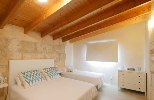 Situated in a country setting in Muro, Villa Torradeta enchants guests with its natural stone walls, beams and modern, purist interior. The 45 m² country home consists of a living/dining room, a very well-equipped open-plan kitchen with a dishwasher, one bedroom as well as one bathroom and can therefore accommodate up to 4 people. Amenities also include Wi-Fi, a washing machine, air conditioning and a TV (with cable and satellite). The private, furnished terrace invites you to enjoy breakfast or a barbecue together. As the owners live on the same property, guests of Villa Torradeta share the garden, the infinity pool with their hosts. In 2.3 km (a 6-minute drive) you can reach Muro, where you will find supermarkets, restaurants, bars, cafés and all the shops you need for your daily needs. The dreamlike sandy beach Platja de Muro, with its crystal-clear, turquoise-blue water for a Caribbean flair, is 12 km (a 15-minute drive) from the finca.