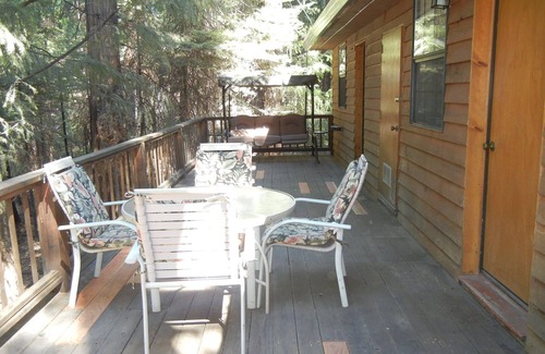 35 miles from Kirkwood Ski Resort this 4 bedroom - 4 bathroom wooden cabin is perfect for family/group gatherings. Sleeps 9 with a full kitchen, large screen TV with 100 free DVD/Bluerays to watch. Free internet access and a recent total remodel of the rooms and living room. Fireplace/stove for a warm winter setting. Back porch overlooking large pine trees enclosing the property. Restaurant and full bar next door that is part of the facility.