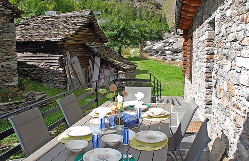 Fontané 15 km from Malvaglia: Important: Power is supplied by a solar panel. Stove, boiler and fridge are gas-operated. Electrical appliances over 250W can not be operated. Note: Mountain road 13 km from Malvaglia real time 25 minutes. >> The use of the access road to the Malvaglia Valley has become subject to a fee as follows: CHF 7.00/day CHF 15.00/week CHF 30.00/month. The fee can be paid either in cash with CHF or by credit card. The toll machine is located in Caslou, right after you cross the bridge. Beautiful, rustic single-family house "Rustico dell'Orino", 1'291 m a.s.l detached, renovated in 2005, surrounded by meadows. In the district of Fontané with 12 houses, in the district Val Malvaglia, in a quiet, elevated position, 10 m from the river, south facing position. Private: garden (not fenced) with lawn. Terrace, garden furniture. In the house: storage room for bicycles. 1.4 km long narrow motor access to the house (via unmade road, mountain road). 50 m footpath (5 steps) to the house. Width of access road: 300 cm. Parking at the house at 50 m. Shop 15 km, grocery 15 km, supermarket 15 km, shopping centre 18 km, restaurant 1 km, bakery 15 km, pub garden 6 km, bus stop "Malvaglia Orino 131/ 132" 9 km, railway station "Biasca SBB-FFC" 22 km. Walking paths from the house 5 m, cable car 6 km. Nearby attractions: Mulino di Dandrio, Museo della Valle di Blenio, Castello di Seravalle, Negrentino, Castelli di Bellinzona UNESCO, Splash und SPA + Monte Tamaro. Well-known lakes can easily be reached: Lago di Luzzone, Lago Retico (Lucomagno), Lago di Lugano, Lago Maggiore. Hiking paths: Montegreco, Capana Quarnei, Capana Prou, Val Malvaglia, Valle di Blenio. Please note: car recommended. Suitable for families. Animals in the neighbourhood.